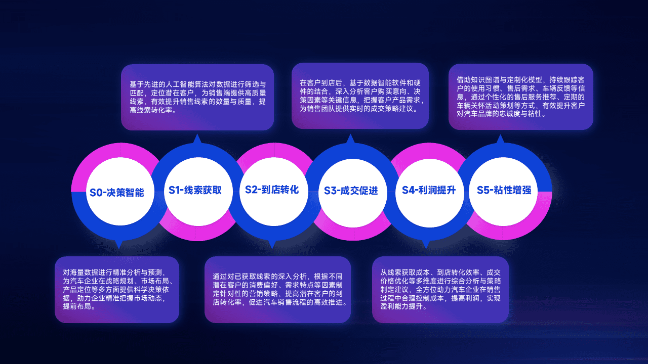 通过拓宽潜在客户来源、、、、优化线索分配并提高到店转化率,,以增强销售效率。。。同时,,,,利用线索数据不断优化分析模型,,有效提升转化率,,扩大营销影响力。。